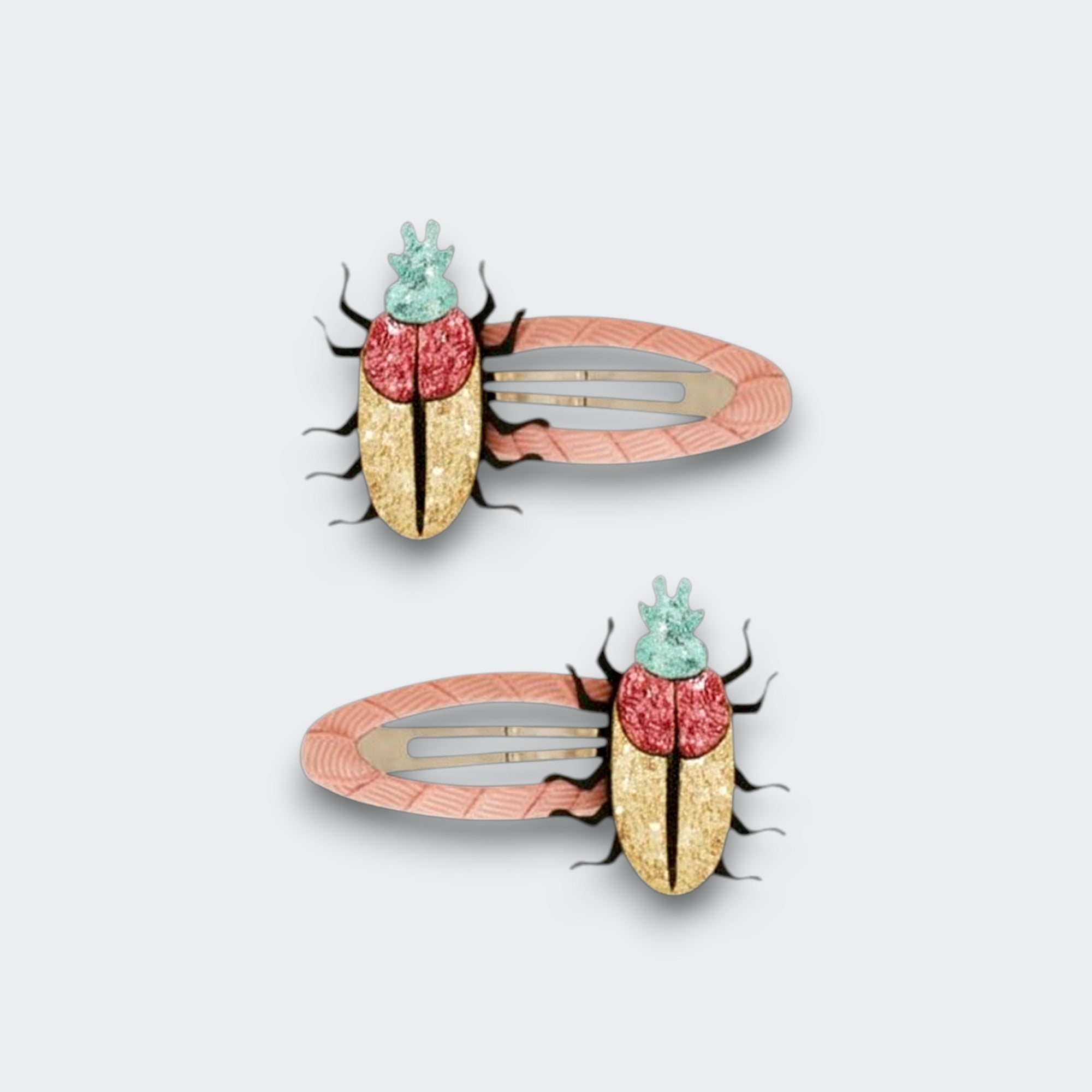 A charming bug duo to fall in love with! These glittering hair clips bring a pop of color and a dash of good humor to any hairstyle, sparking imagination and little everyday adventures. A playful, gift-ready accessory perfectly suited for the world of Little Moony.