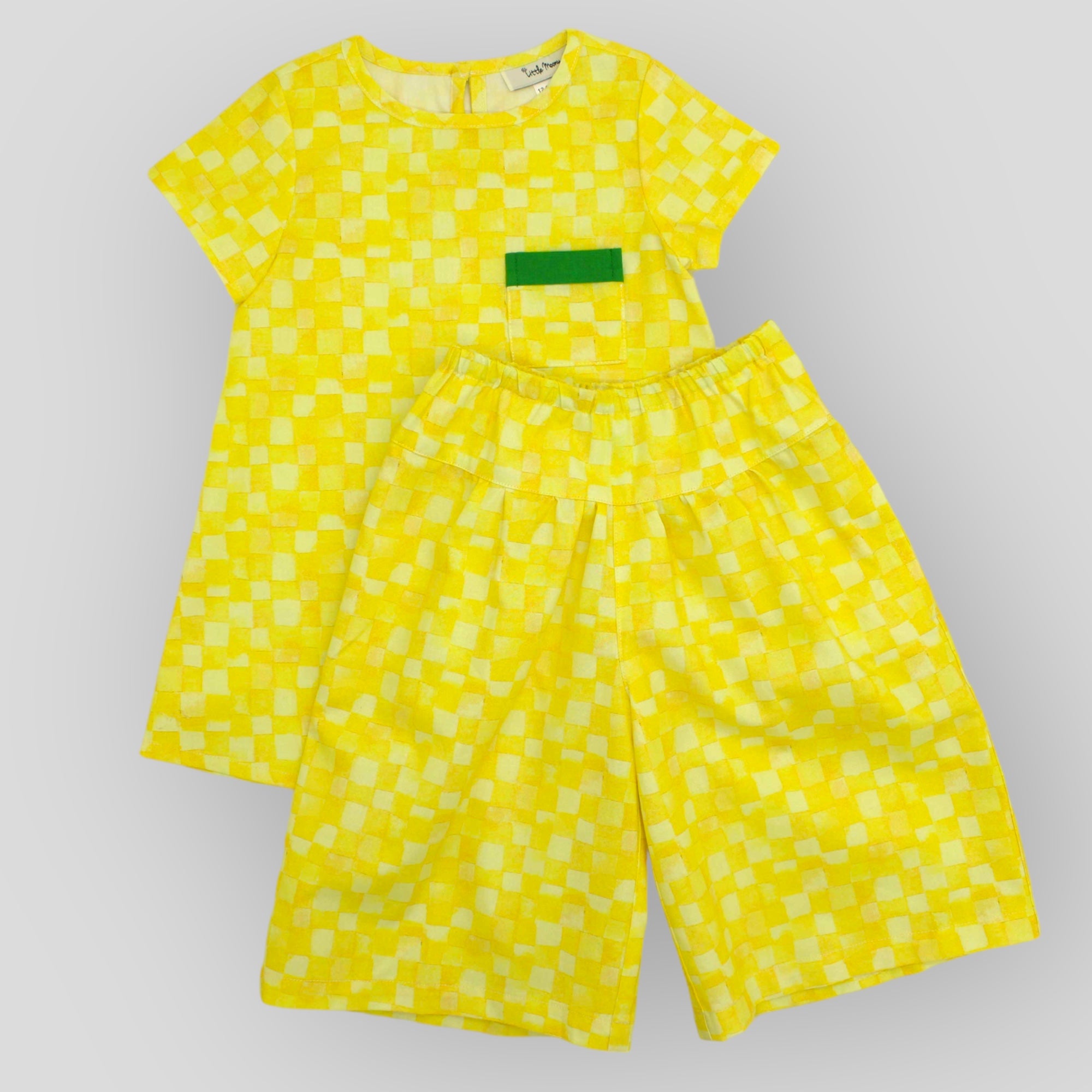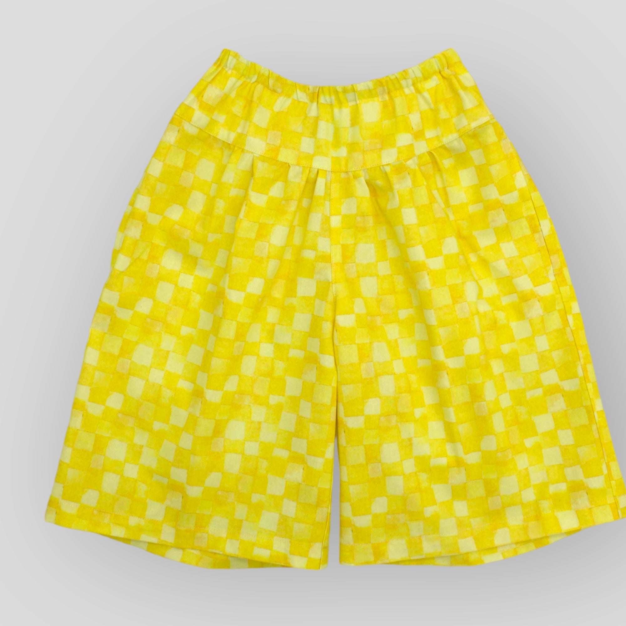 Soft Cotton Culotte Pants in Yellow Checkerboard