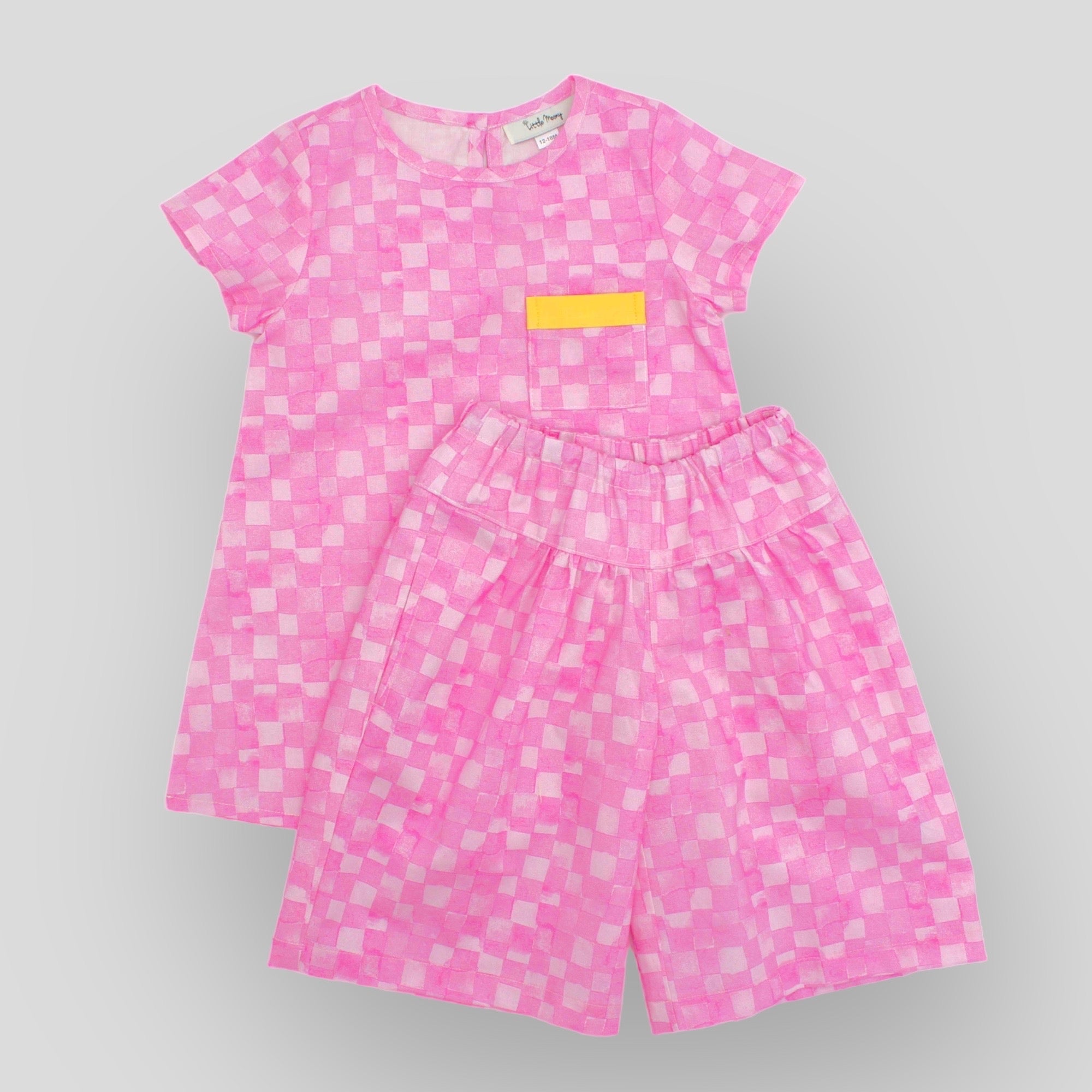 Elevate your little one's wardrobe with the Little Moony Pink Checkerboard Wide-Leg Culotte Pants, where style meets comfort and fun meets functionality for every occasion.