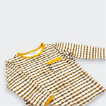 This long-sleeve tee wraps everyday play in cozy, autumnal charm. Crafted from a soft cotton interlock blend with just the right amount of stretch, it feels smooth and gentle against the skin — perfect for layering or wearing on its own. The warm check pattern is paired with honey-colored trim and a playful chest pocket, giving this classic silhouette a modern, cheerful twist.